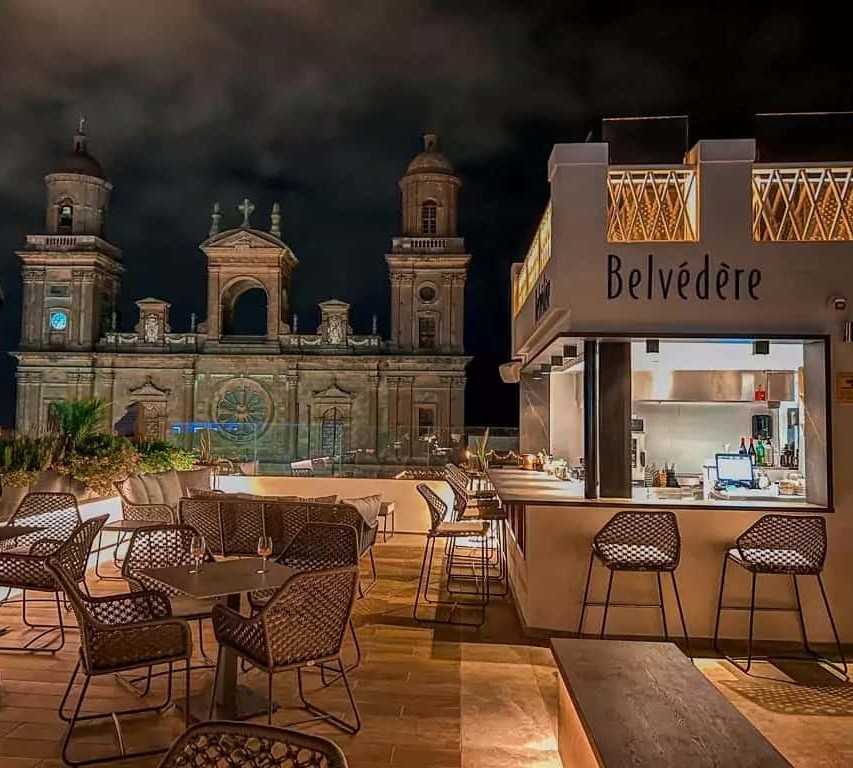 Por su atmósfera silenciosa, su iluminación cálida y su inmejorable ubicación frente a la Catedral, la Terraza Belvedere en Vegueta es nuestra opción